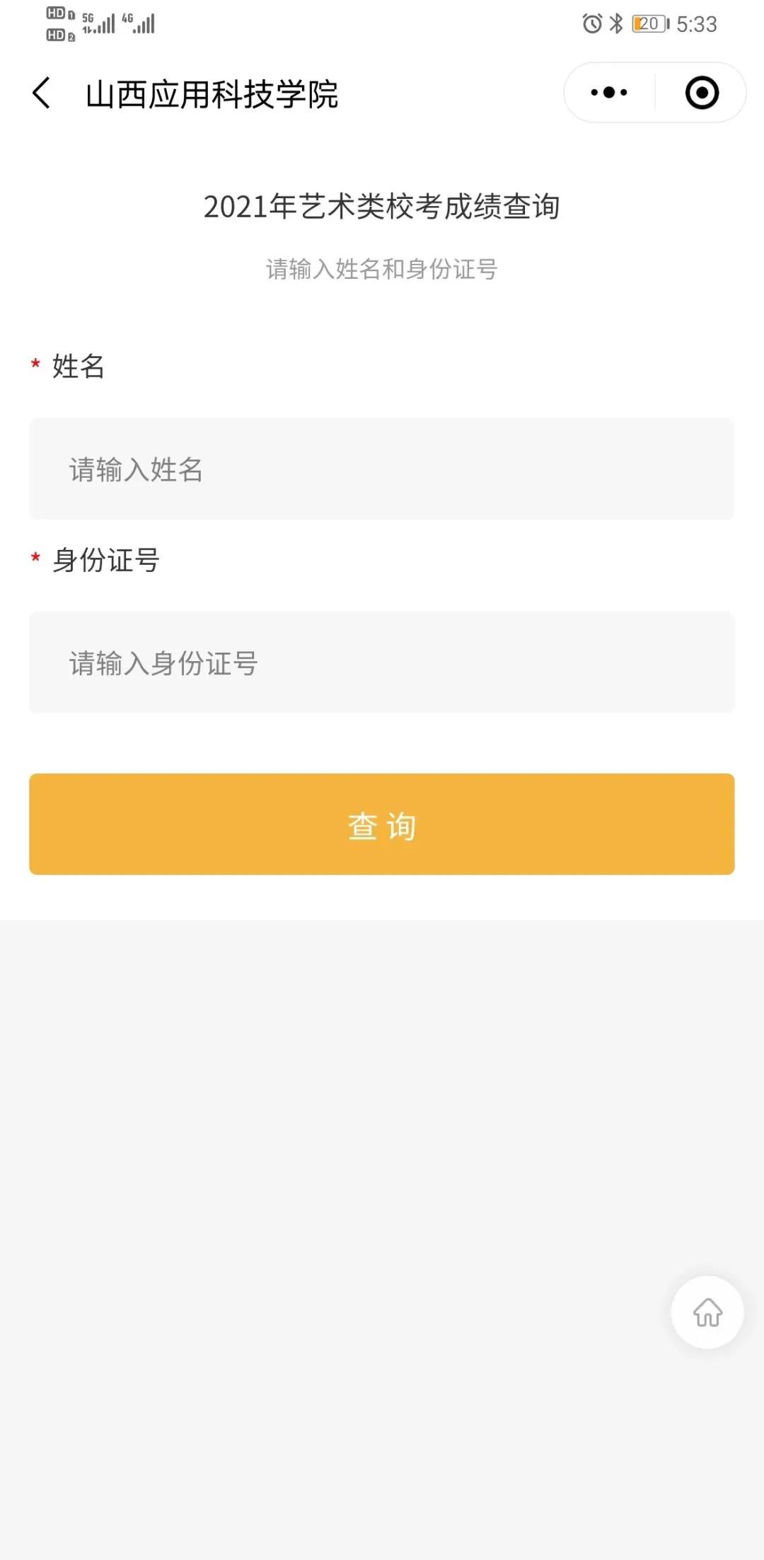 点击2021年艺术类专业校考成绩查询平台